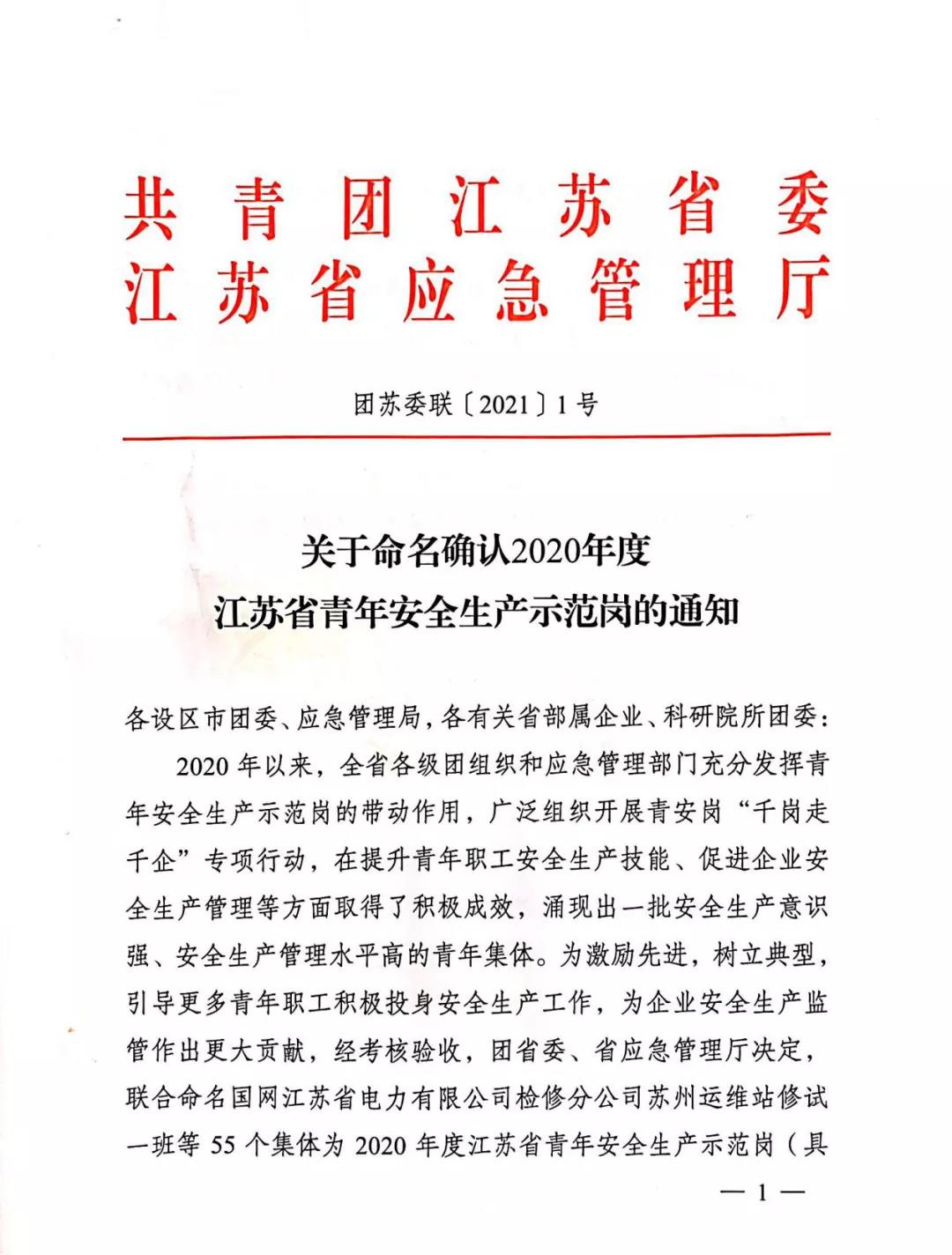 據(jù)了解,“2020年度江蘇省青年安全生產(chǎn)示范崗”是團(tuán)省委和省應(yīng)急管理廳聯(lián)合開(kāi)展的一項(xiàng)創(chuàng)建活動(dòng),旨在激勵(lì)先進(jìn)、樹(shù)立典型,引導(dǎo)更多青年職工積極投身安全生產(chǎn)工作。